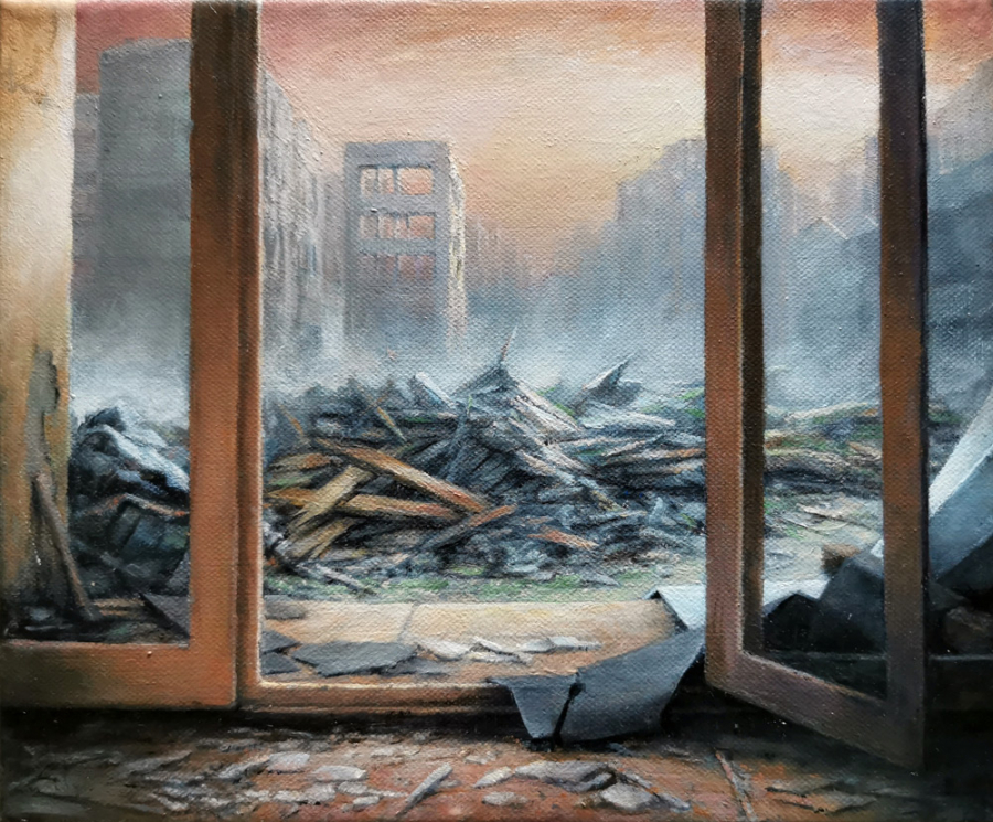 Meine Serie "Flucht" zeigt die Menschen nicht nur als anonyme Opfergruppe, was zu abstrakt und schwer greifbar ist, sondern als individuelle Menschen auf Augenhöhe. Jeder von uns könnte unter Umständen in eine ähnliche Situation geraten. Die beiden Arbeiten "Flucht - 2016 Mittelmeer" und "Flucht - 1989 ungarische Grenze" aus dem Jahr 2017 setzen unterschiedliche Fluchtgründe gegenüber: die Flucht vor Krieg, Zerstörung und Vernichtung sowie die Flucht vor einer repressiven Diktatur. Beide verbindet die Sehnsucht nach der Möglichkeit, ein erfülltes Leben führen zu können.